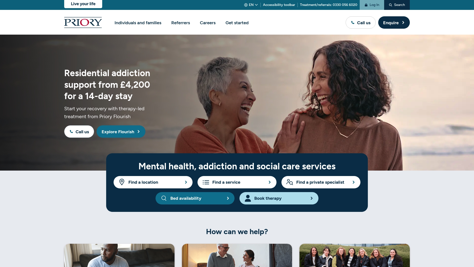 Priory Group fits people and families seeking private or specialist NHS-referred mental health, addiction or neurodiversity care that includes residential options. It also suits healthcare professionals and organisations needing assessment or treatment pathways for patients.