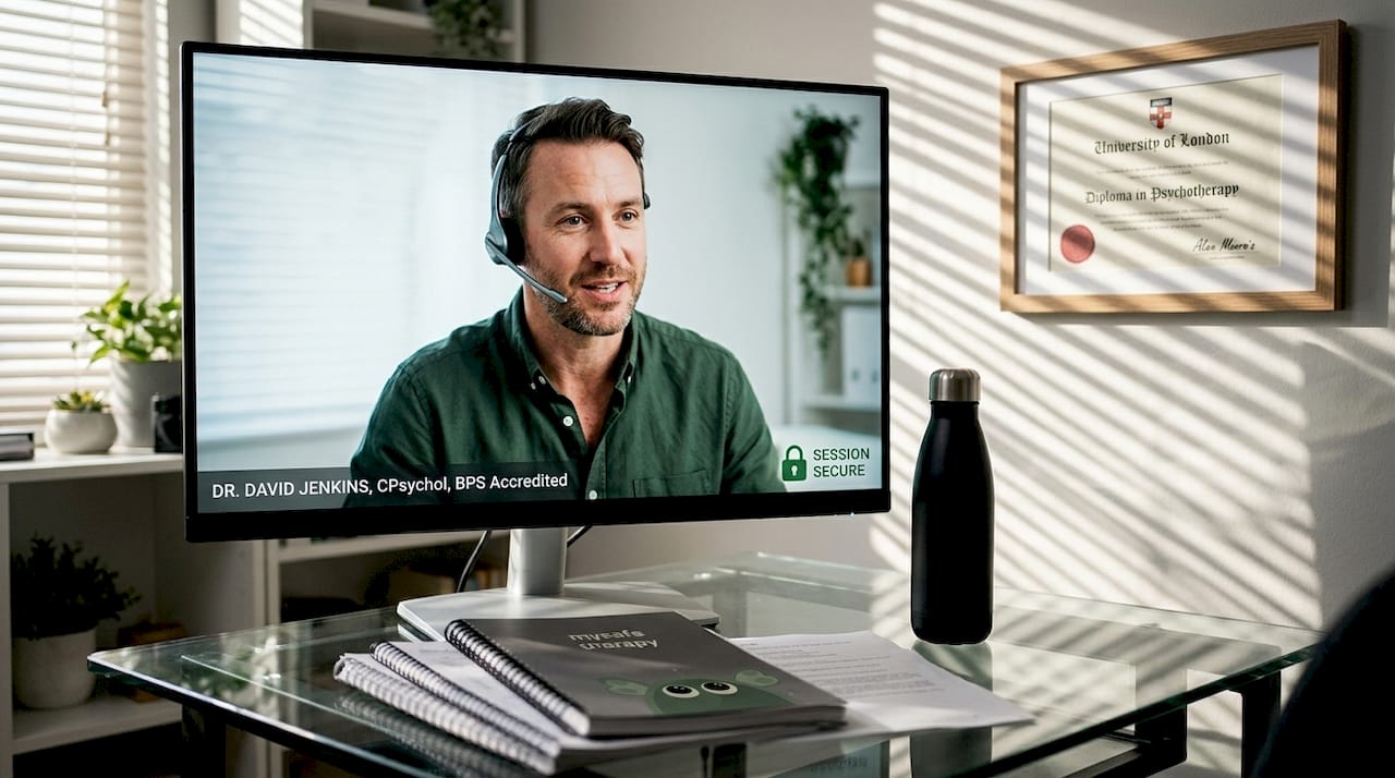 Verify your therapist holds current registration with BACP, UKCP, or HCPC by searching their online registers using the therapist's name and registration number. Confirm the platform uses encryption and GDPR-compliant data protection by asking directly about security measures. Prepare a private space with stable internet connection of at least 3 Mbps, test your video and audio equipment beforehand, and ensure you have emergency contact numbers readily available. Request written documentation of privacy policies and emergency protocols before your first session.