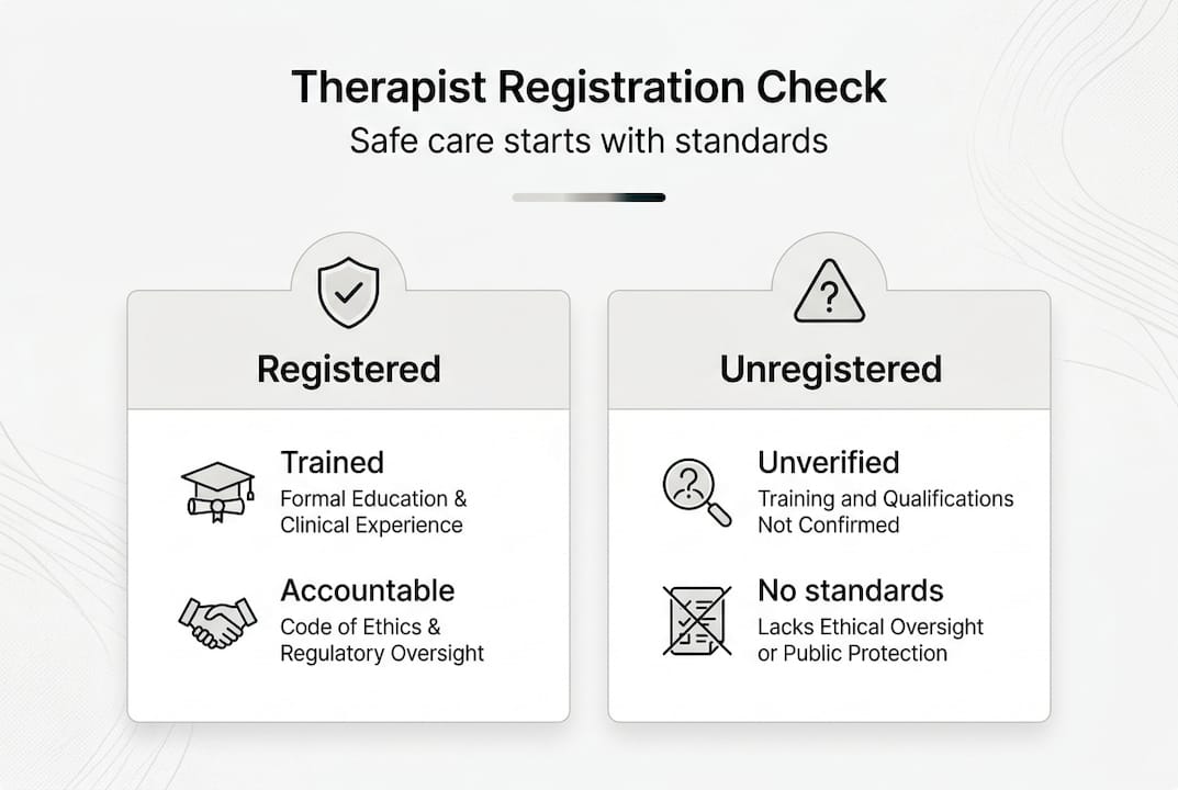 | Aspect | Registered therapist | Unregistered therapist |